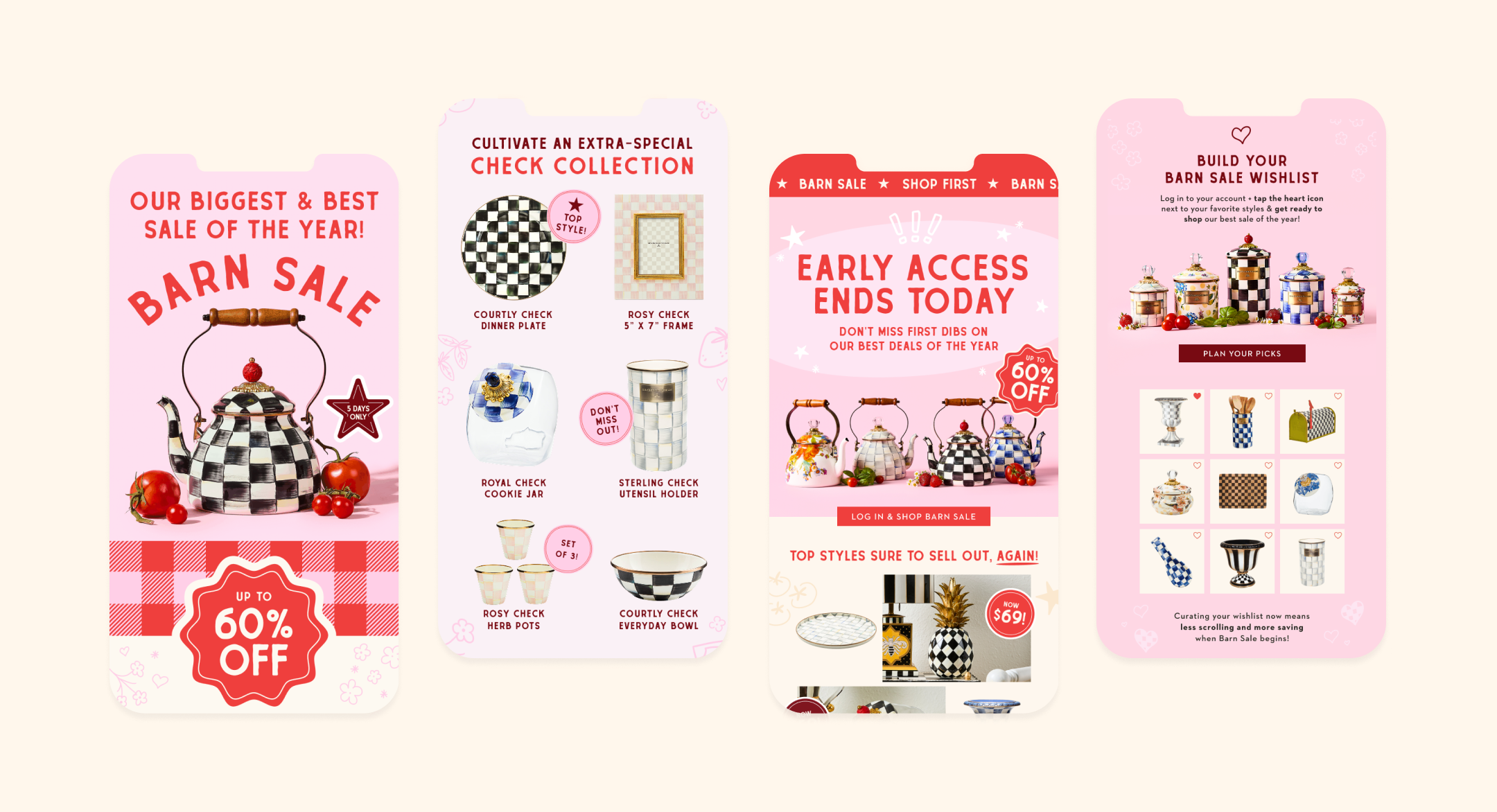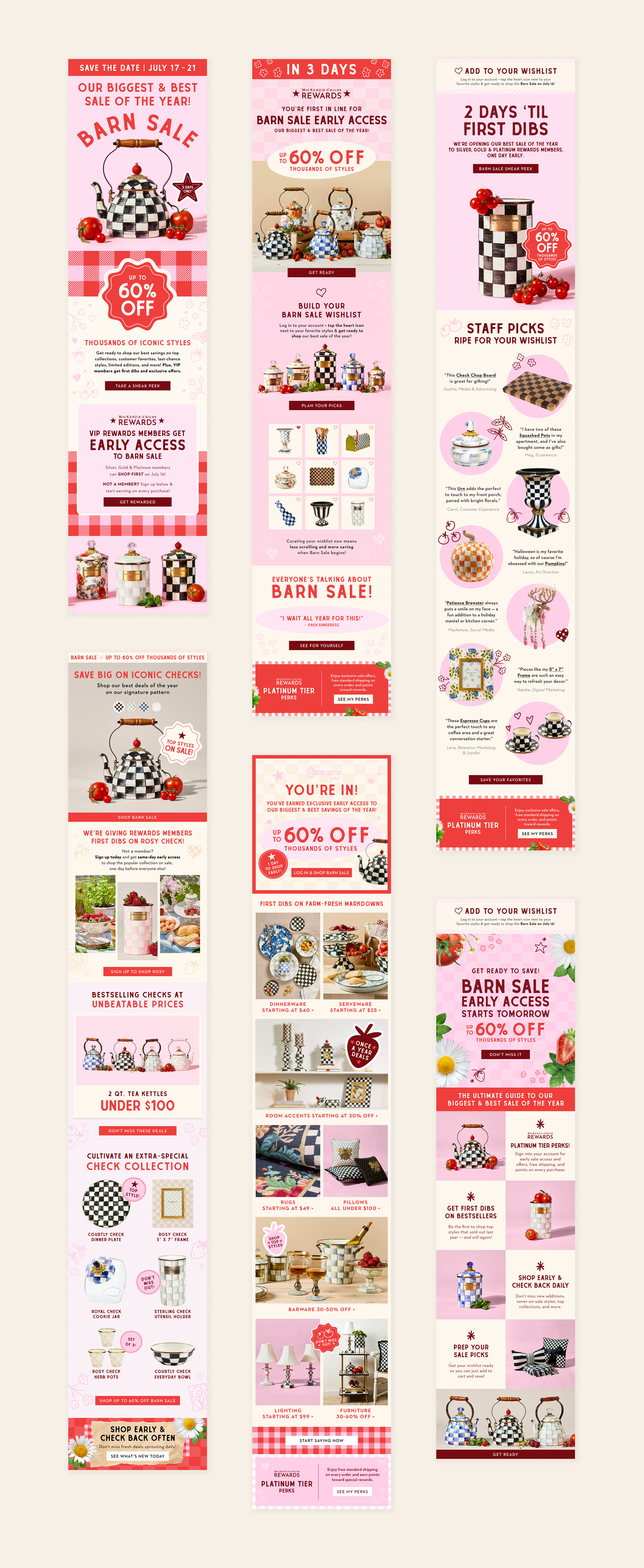 Develop a cohesive series of email designs within a campaign to promote the brands largest sale of the year. The project required following established brand guidelines, style standards, and marketing objectives with strong sale messaging while translating campaign messaging into clear, engaging visuals across multiple emails.